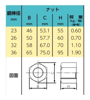 六角幅50mm H=60 φ26.0ゲビン棒用 @1350